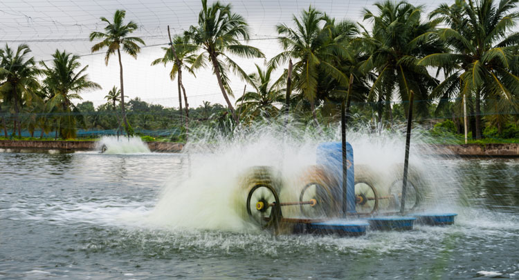 Hệ thống sục khí trong ao nuôi tôm giúp cải thiện chất lượng đáy ao. Ảnh: Shutterstock