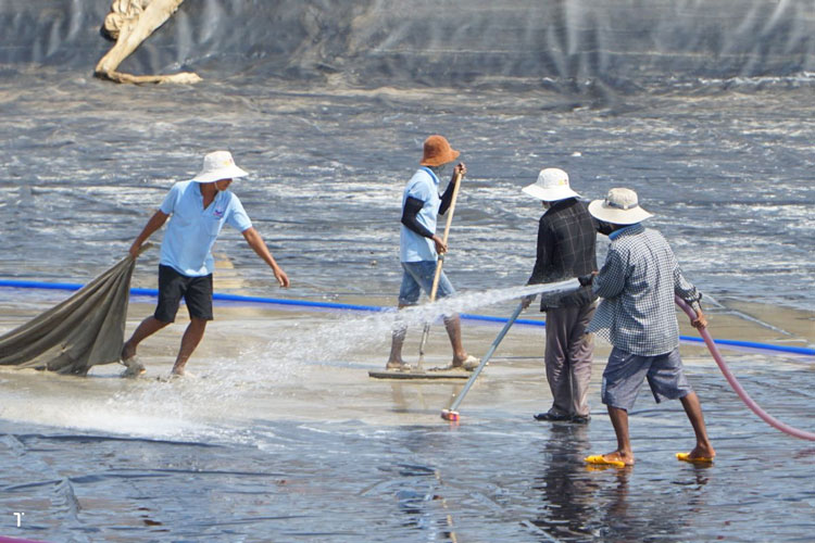 Ðối với trường hợp cải tạo khô ngoài việc vét hết lớp bùn bẩn khỏi ao nuôi thì việc rải vôi, phơi đáy và cày xới đáy ao giúp cho đáy ao thông thoáng, tiêu diệt mầm bệnh và giải phóng khí độc là điều hết sức cần thiết. Ðối với trường hợp cải tạo ướt thường không tẩy dọn triệt để chất thải nên ngoài việc sử dụng vôi, trước khi thả tôm, phải sử dụng thêm một số loại chế phẩm sinh học để tăng cường làm sạch đáy ao.