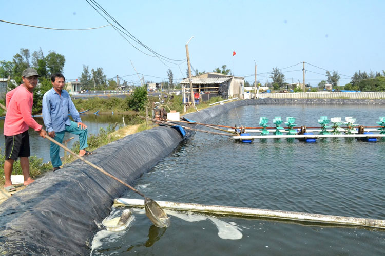 Người nuôi cần chủ động phòng ngừa biến động môi trường ao nuôi. Ảnh: Quang Việt